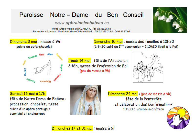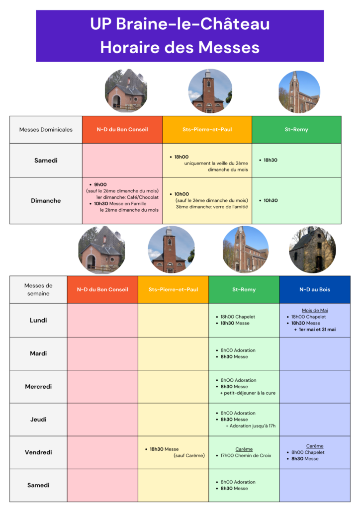 Nous sommes un ensemble de trois paroisses de Braine-le-Château, Wauthier-Braine et Noucelles reliées ensemble pour former une Unité Pastorale Nouvelle.